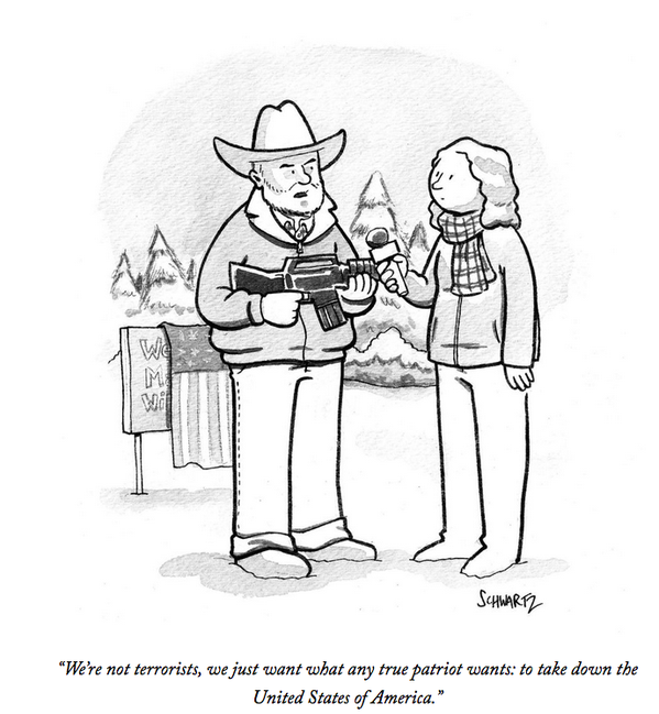 If the guys occupying the building were doing so as a protest against mandatory minimums in general I might be more sympathetic, but their statements point to something larger and more conspiracy-minded. There is apparently a history of the Hammonds butting heads with the BLM just like the Bundys, and one of the guys there is Jon Ritzheimer, who has staged anti-Muslim rallies and threatened to put a Senator under citizen’s arrest for voting on the Iran nuclear agreement. The Hammond’s sentencing is only tangential to their real gripes here.