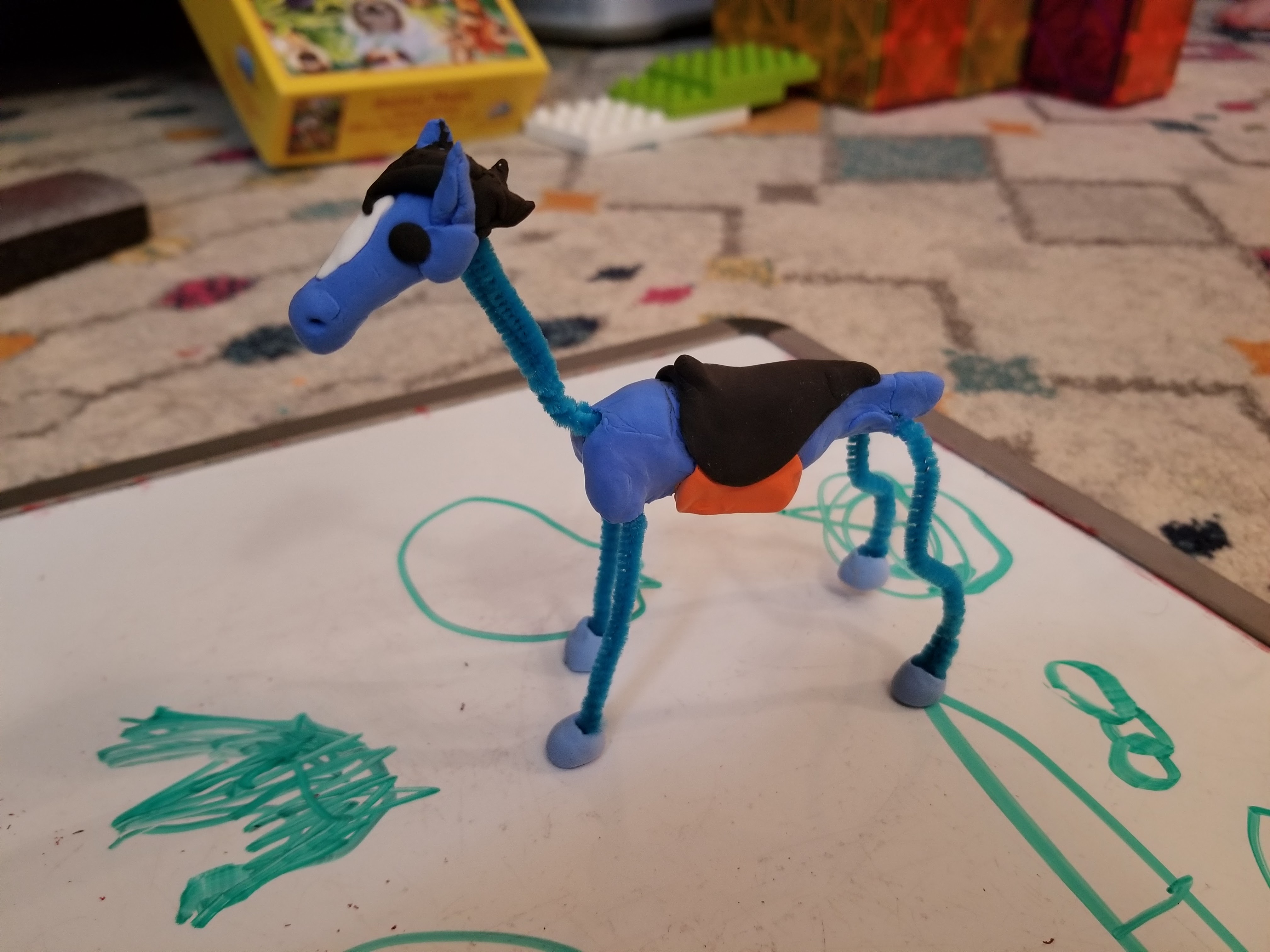 Next I wanted to make an articulated/posable horse. It worked well and is pretty rugged. First pic is partway through building, I buult the horse over several short sessions.
