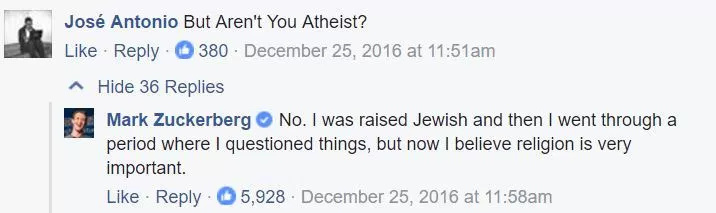 It is a public statement of sorts, but very low-key and only as a brief reply to a direct question in the comment thread of a bland holiday greeting. If this is the first we’ve heard, I don’t think we can claim that he’s using religion to gain popularity.