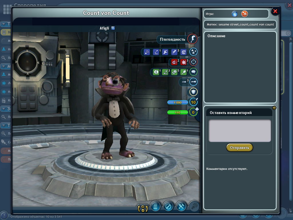 Years ago, my wife made a doppleganger of a certain Count in Spore (that game where you design your own species and lead it through history. Or just make creatures and things).