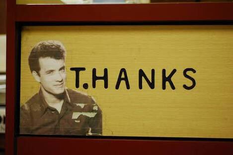 Anyone notice he replaced a red/black ribbon with a plain black? I would have flipped the ribbon over and typed my damn paper in red (because it is 11:35 at night and I need to make these pencil scribblings into actual sentences stat so I can get SOME sleep tonight). Who has the foresight to have a spare ribbon on hand? T.Hanks