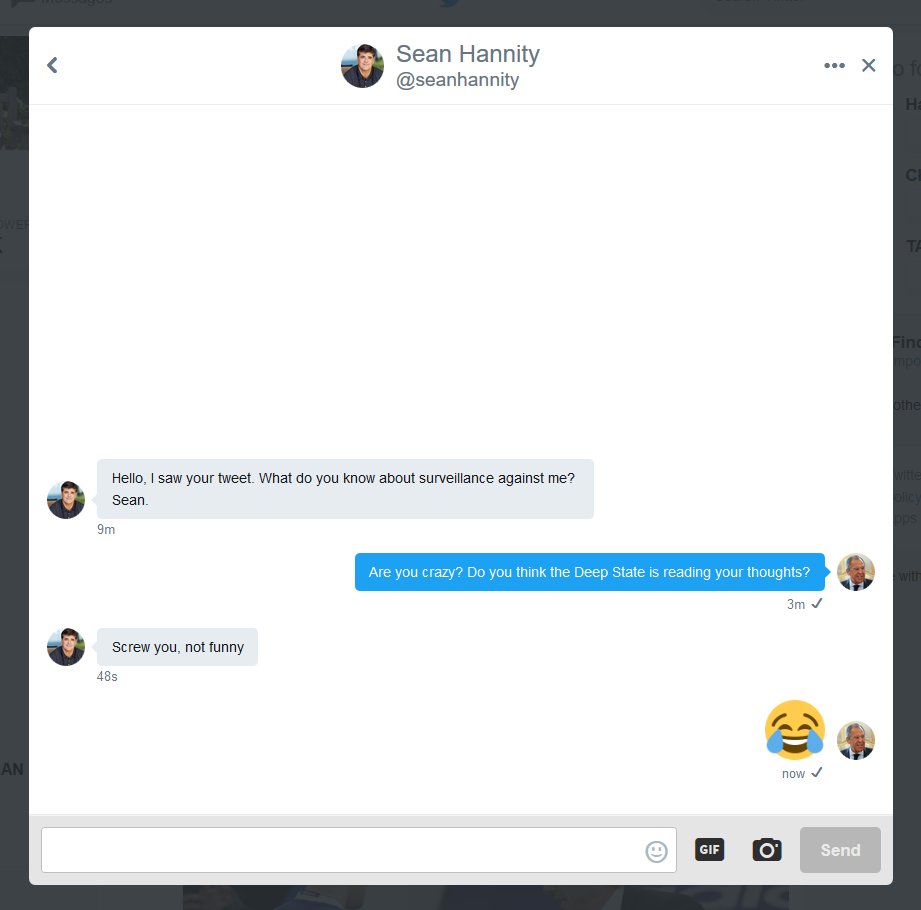 FWIW, it sounds like Hannity is admitting contact with foreign spies under suspicious circumstances or being involved in international crime, since thatās the only way heād have been caught up in a FISA intercept and been unmasked.
